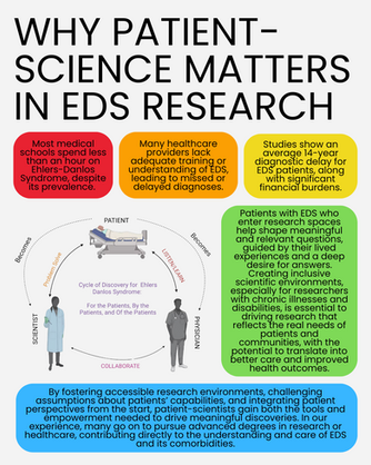 An accurate diagnosis can bring a huge feeling of validation of symptoms experienced throughout one's life...but it can also be overwhelming to be told you have a genetic condition. Although we are a research lab, we are often looked to for answers on where to begin. These resources can serve as a starting place to understand what EDS and HSD are, how they are diagnosed, and how to build the medical support team patients with these conditions need.